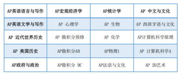 高级课程:所有课程为大学预备课程,荣誉课程:9,AP课程:20