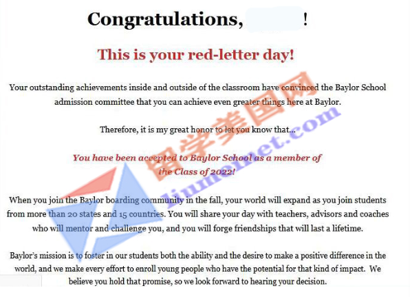 Baylor School位于田纳西州占地690英亩,距离查塔努加市只有三英里。从学校驱车两小时就可到达亚特兰大、伯明翰等大城市。目前学校共有1千余名初高中学生,国际生55名,来自中国的国际生40名,分散在高中的4个年级里。学校提供高质量的AP课程23门,有40个课外团体,21种校队体育运动。