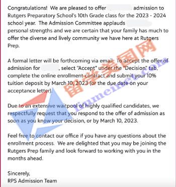 最终在面试环节,Y同学的卓越表现成功收获了一众面试官的青睐,最终成功斩获罗格斯预备学校Rutgers Preparatory School的录取offer!