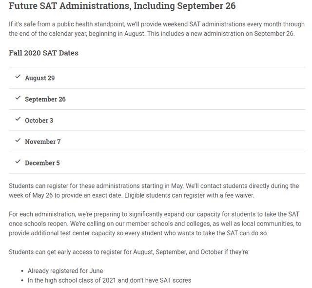 喜讯!关闭的SAT考试要开始了!原本College Board官网预告的考试计划已经确定为正式计划!