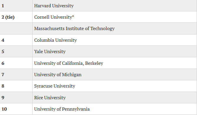 附录:2017年美国大学建筑专业排名TOP10