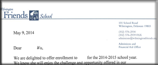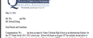 学 生:吴同学 学 历:申请11年级学生 语言成绩:TOEFL成绩79分 申请学校:前60名寄宿高中以及山谷基督高中 |